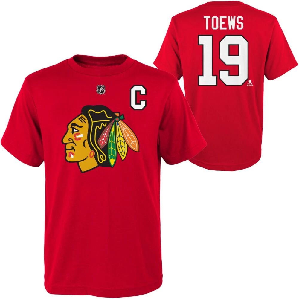 - Chicago Blackhawks Toews T-Shirt features screen printed name on back and numbers on back and shoulders