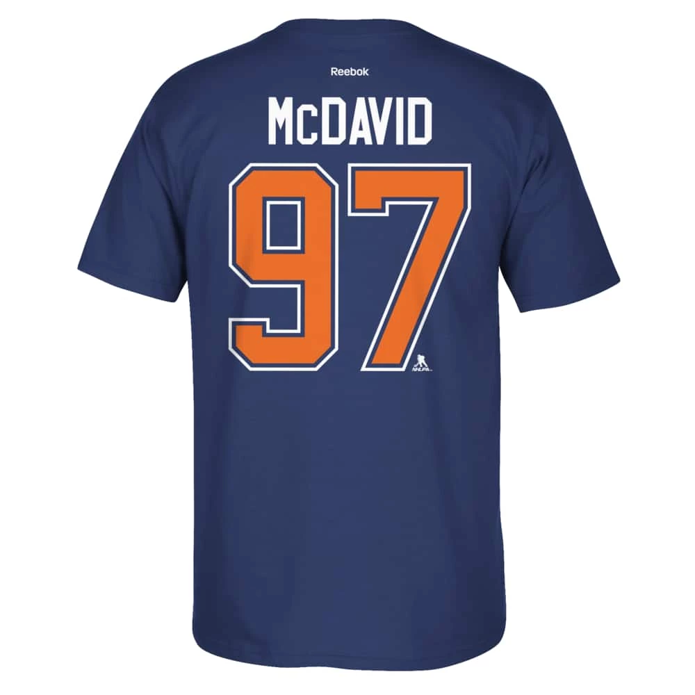 - Edmonton Oilers McDavid T-Shirt features a team logo screen print